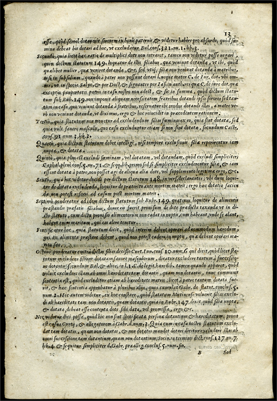 Responsa diuersorum super statutis Mutinae exclusiuis foeminarum, in quibus latissimè examinatur quaestio illa, an filiae exclusae à successione matris stantib. masculis debeatur dos de bonis maternis, non obstante quod fuerit à fratre dotata in bonis paternis, ante mortem matris / [Giovanni Pietro Sordi, Sforza degli Oddi, Giacomo Menochio]. -