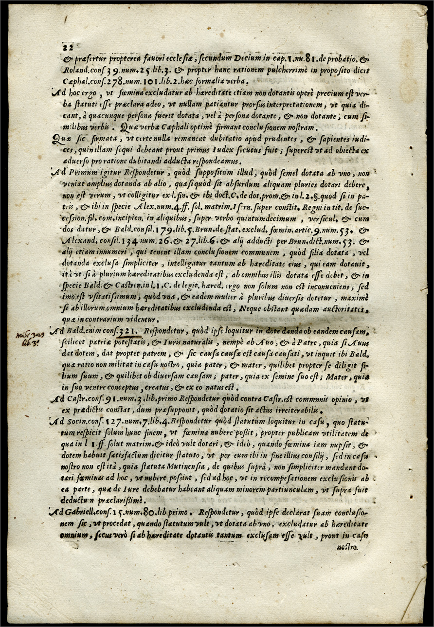 Responsa diuersorum super statutis Mutinae exclusiuis foeminarum, in quibus latissimè examinatur quaestio illa, an filiae exclusae à successione matris stantib. masculis debeatur dos de bonis maternis, non obstante quod fuerit à fratre dotata in bonis paternis, ante mortem matris / [Giovanni Pietro Sordi, Sforza degli Oddi, Giacomo Menochio]. -