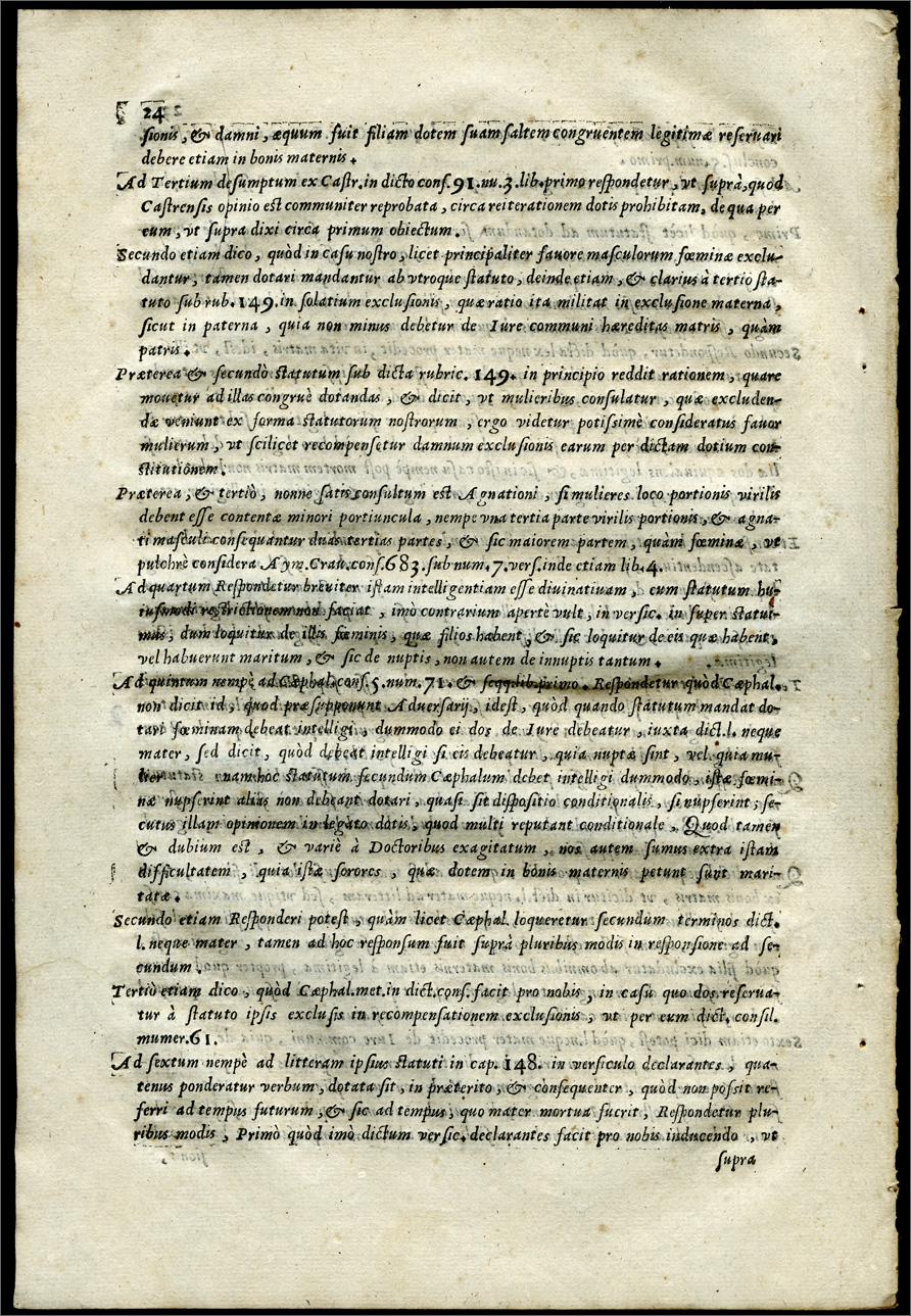 Responsa diuersorum super statutis Mutinae exclusiuis foeminarum, in quibus latissimè examinatur quaestio illa, an filiae exclusae à successione matris stantib. masculis debeatur dos de bonis maternis, non obstante quod fuerit à fratre dotata in bonis paternis, ante mortem matris / [Giovanni Pietro Sordi, Sforza degli Oddi, Giacomo Menochio]. -