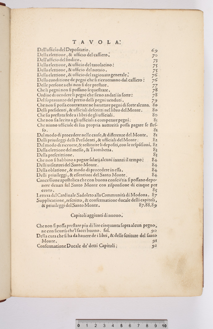punto beige Capitoli, et ordini del Santo Monte di pietà uecchio della città di Modona. (p. 66-94)