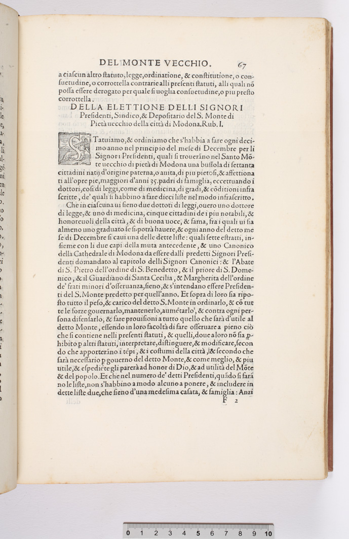 p. 67: Capitoli, et ordini del Santo Monte di pietà uecchio ... (continua)