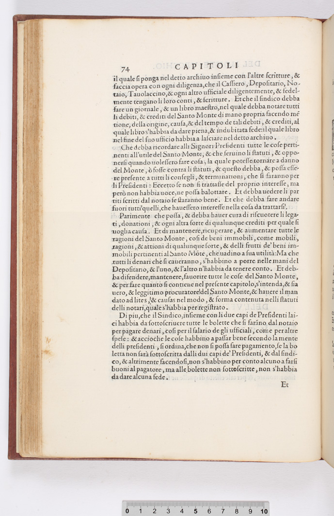 p. 74: Capitoli, et ordini del Santo Monte di pietà uecchio ... (continua)