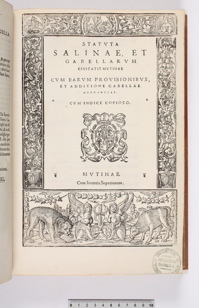 Statuta salinae, et gabellarum ciuitatis Mutinae cum earum prouisionibus, et additione gabellae mercantiae. Cum indice copioso. -