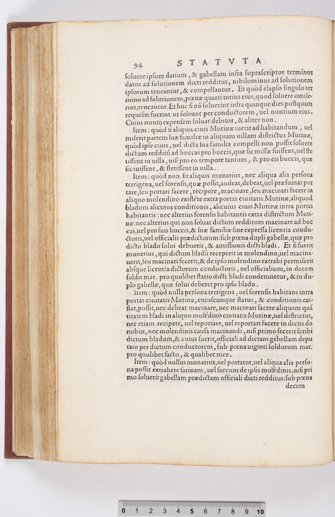 Statuta prouisiones, et modi generales reddituum, et gabellarum ciuitatis Mutinae. (p. 13-102) |