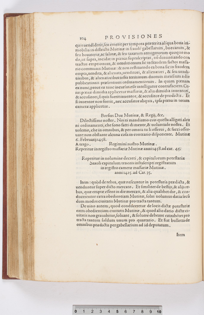 p. 104: Literae, prouisiones, et proclamata gabellarum ciuitatis Mutinae.