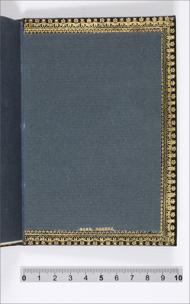 contropiatto posteriore, con sottoscrizione della legatoria Gozzi di Modena