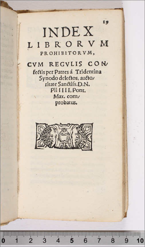 Index librorum prohinitorum, cum regulis confectis per patres à Tridentina synodo delectos, auctoritate sanctiss. D. N. Pii IIII, pont. max comprobatus (c. 19r--59r) |