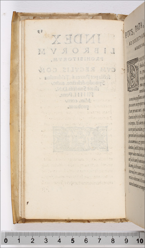 punto beige Index librorum prohinitorum, cum regulis confectis per patres à Tridentina synodo delectos, auctoritate sanctiss. D. N. Pii IIII, pont. max comprobatus (c. 19r--59r)