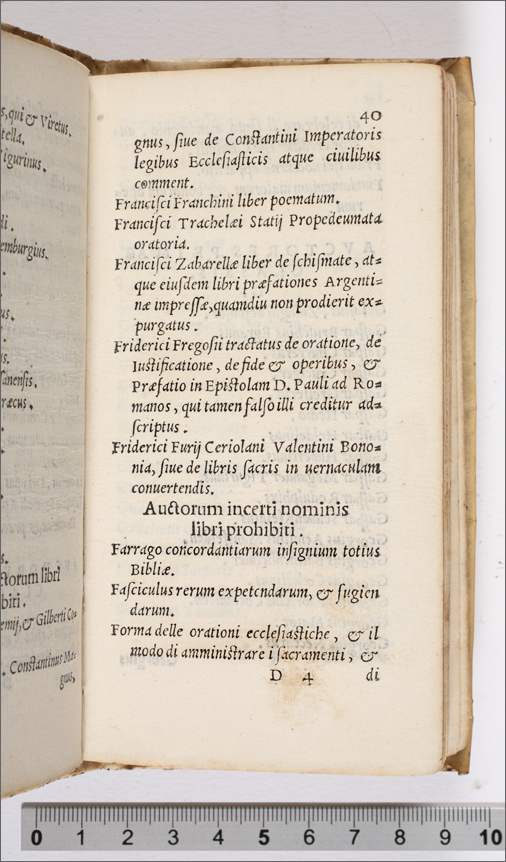Index librorum prohinitorum, cum regulis confectis per patres à Tridentina synodo delectos, auctoritate sanctiss. D. N. Pii IIII, pont. max comprobatus (c. 19r--59r) |