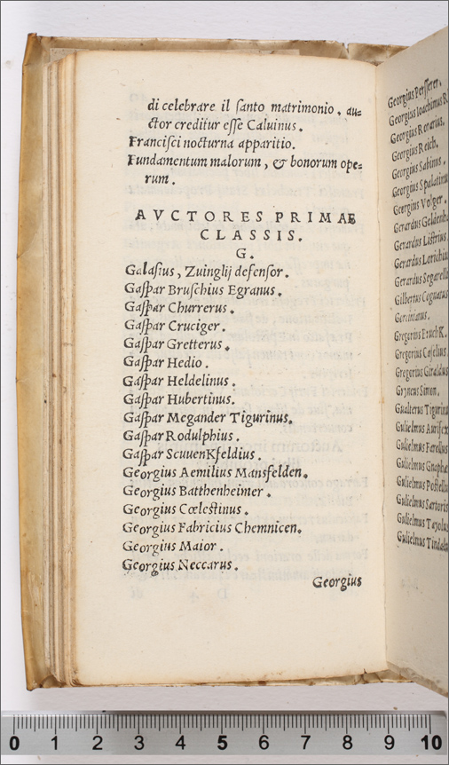 Index librorum prohinitorum, cum regulis confectis per patres à Tridentina synodo delectos, auctoritate sanctiss. D. N. Pii IIII, pont. max comprobatus (c. 19r--59r) |