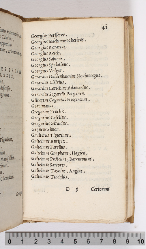 Index librorum prohinitorum, cum regulis confectis per patres à Tridentina synodo delectos, auctoritate sanctiss. D. N. Pii IIII, pont. max comprobatus (c. 19r--59r) |
