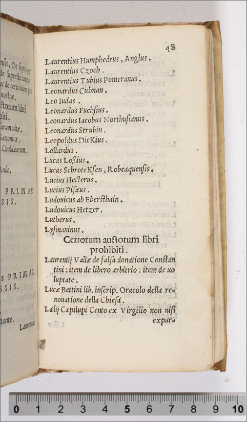 punto beige Index librorum prohinitorum, cum regulis confectis per patres à Tridentina synodo delectos, auctoritate sanctiss. D. N. Pii IIII, pont. max comprobatus (c. 19r--59r)