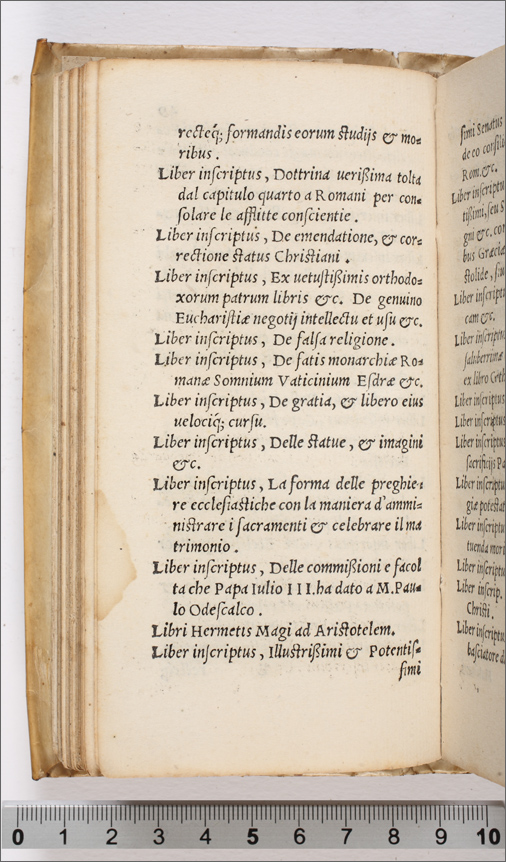 Index librorum prohinitorum, cum regulis confectis per patres à Tridentina synodo delectos, auctoritate sanctiss. D. N. Pii IIII, pont. max comprobatus (c. 19r--59r) |