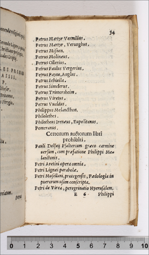 Index librorum prohinitorum, cum regulis confectis per patres à Tridentina synodo delectos, auctoritate sanctiss. D. N. Pii IIII, pont. max comprobatus (c. 19r--59r) |