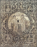 l'udienza di Salomone, i santi Pietro e Paolo (qui a fianco un esempio fiorentino -- dalle Epistole et Euangelii stampate da L. Morgiani e J. Petri per P. Pacini nel 1495 -- che figura in una mostra della Library of Congress tuttora presente in rete: A heavenly craft : the woodcut in early printed books, vd. anche p. 107-110 del catalogo a stampa), il compianto su Cristo morto, la Pietà, l'Immacolata concezione, il martirio di S. Andrea, l'Assunzione, il re David in preghiera, S. Francesco che riceve le stimmate ...