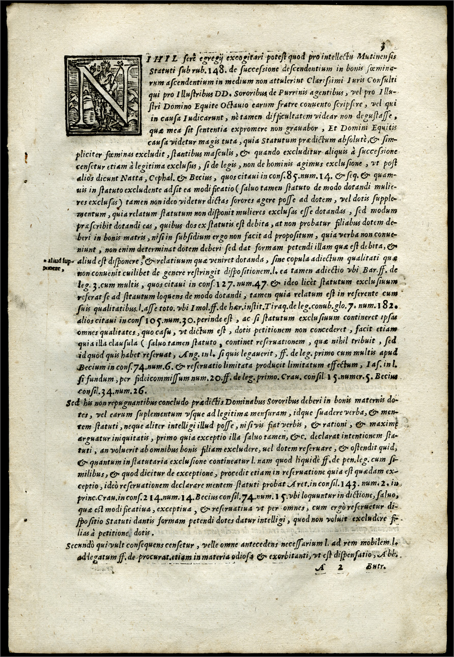 Responsa diuersorum super statutis Mutinae exclusiuis foeminarum, in quibus latissimè examinatur quaestio illa, an filiae exclusae à successione matris stantib. masculis debeatur dos de bonis maternis, non obstante quod fuerit à fratre dotata in bonis paternis, ante mortem matris / [Giovanni Pietro Sordi, Sforza degli Oddi, Giacomo Menochio]. -