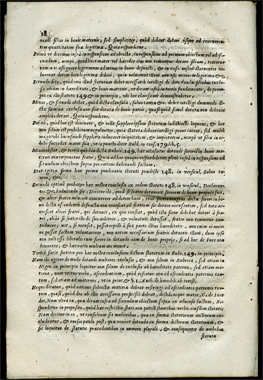 Responsa diuersorum super statutis Mutinae exclusiuis foeminarum, in quibus latissimè examinatur quaestio illa, an filiae exclusae à successione matris stantib. masculis debeatur dos de bonis maternis, non obstante quod fuerit à fratre dotata in bonis paternis, ante mortem matris / [Giovanni Pietro Sordi, Sforza degli Oddi, Giacomo Menochio]. -