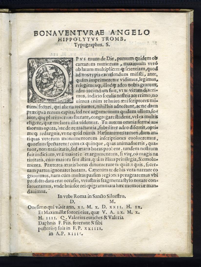 c. A3r: Bonauenturae Angelo Hippolytus Tromb. typographus. S.