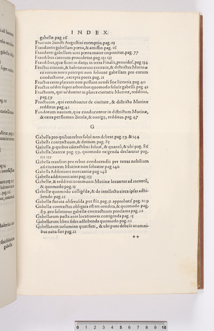 punto beige Index eorum quae in statutis gabellarum & earum prouisionibus, & additione mercantiae continentur. (c. ☩4v-2☩4v)