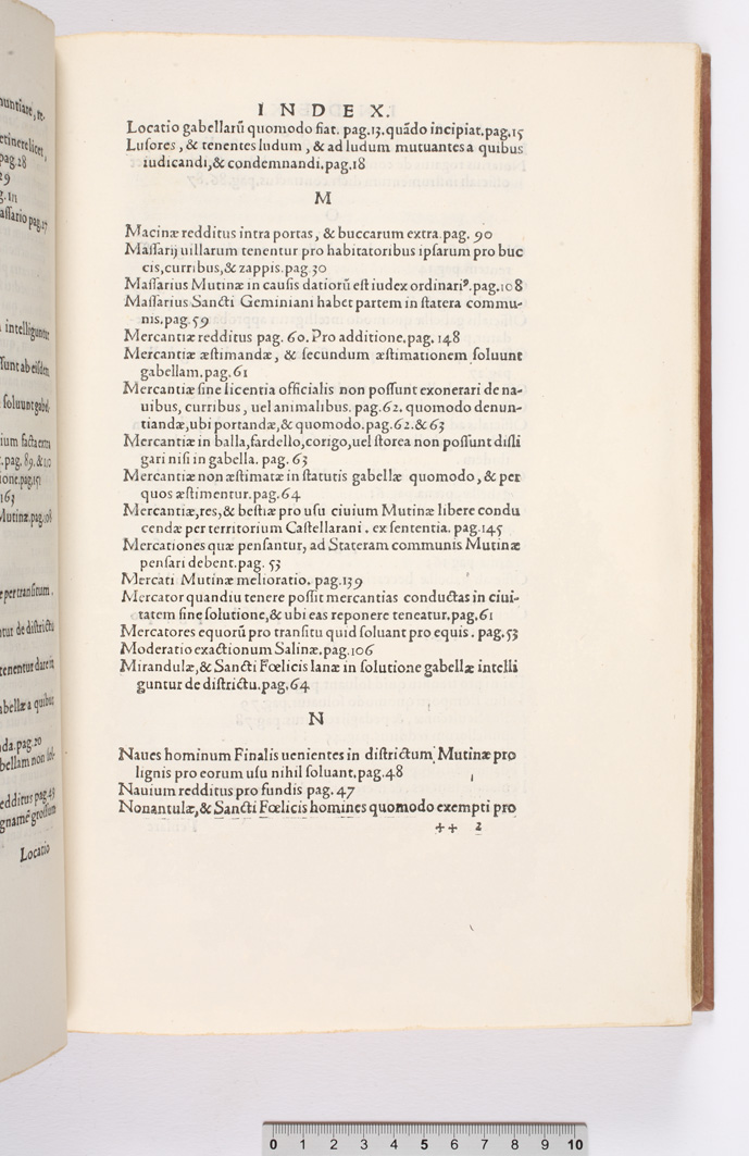 c. 2☩2r: Index eorum quae in statutis gabellarum ... continentur. (continua)
