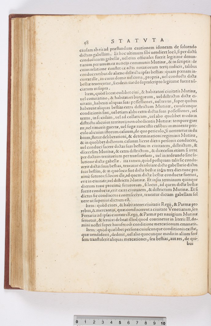 Statuta prouisiones, et modi generales reddituum, et gabellarum ciuitatis Mutinae. (p. 13-102) |