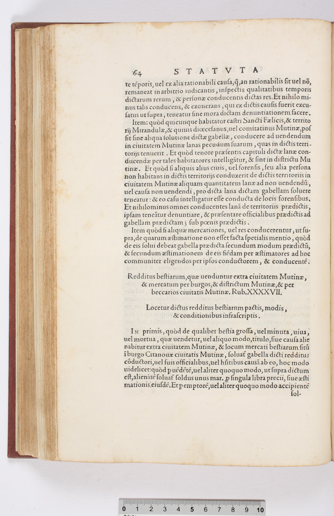 Statuta prouisiones, et modi generales reddituum, et gabellarum ciuitatis Mutinae. (p. 13-102) |