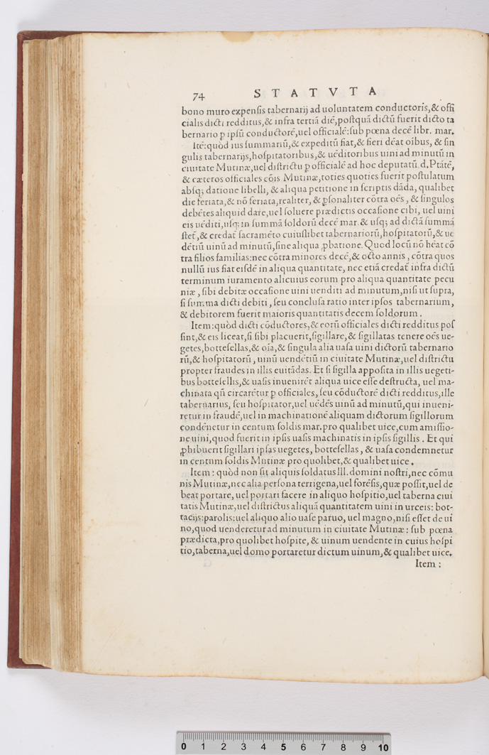 Statuta prouisiones, et modi generales reddituum, et gabellarum ciuitatis Mutinae. (p. 13-102) |