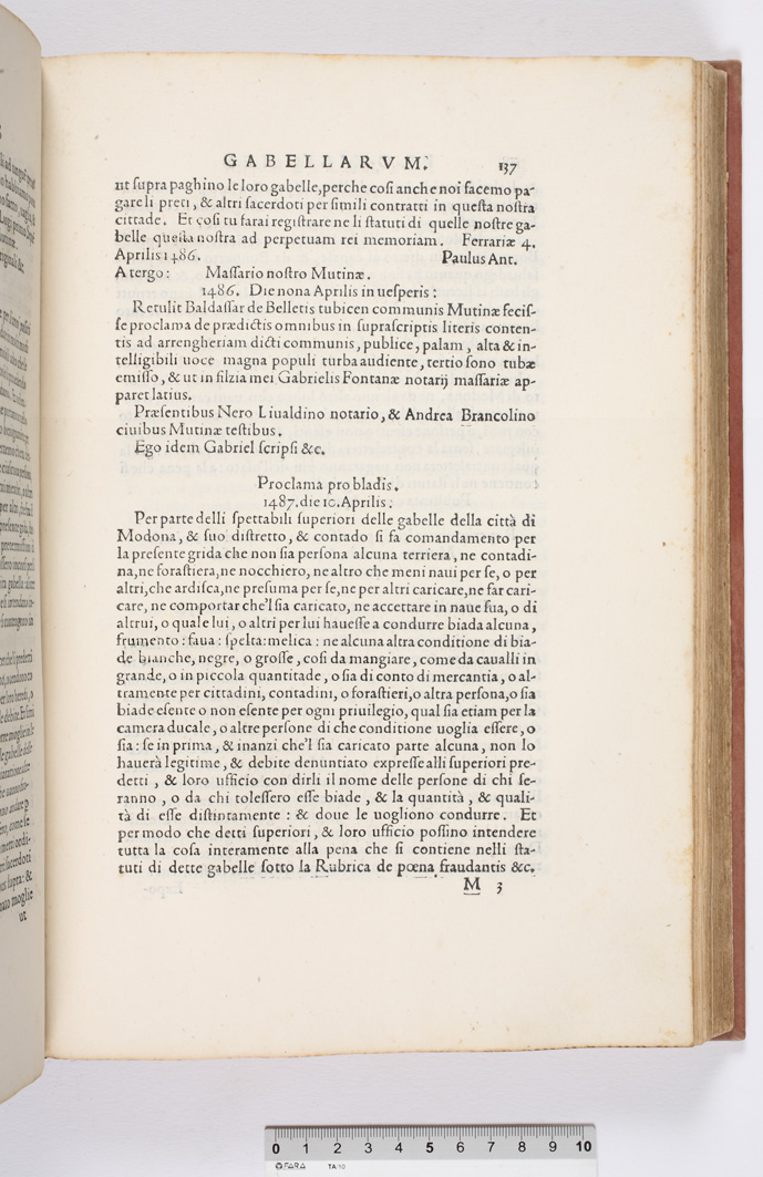 p. 137: Literae, prouisiones, et proclamata gabellarum ciuitatis Mutinae.