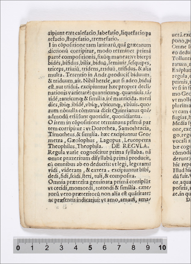 [Lettere, vocali, consonanti] - De versu - De pedibus - De hexametro - De pentametro - De hypermetro - De synaloepha - De ellipsi - De caesuris - De syllabis - De vocali ante vocalem - De diphtongo - De deriuatione - De praepositione - De compositione - De regula - De exemplo - De media syllaba - De regula vocalium in mediis syllabis - De regula in nominum ac verborum crementis - De cremento verbi - De accentu - De vltimis syllabis.