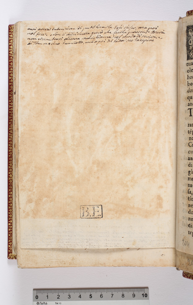 punto beige particolare dell'annotazione ms. al recto e al verso del frontespizio, con sua trascrizione