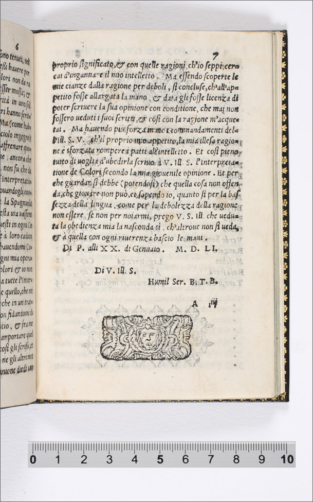 punto beige L'incarnato color amor fa chiaro (p. 2); Paolo Gadaldini Alla illustrissima signora di Sassuolo. La signora Virginia Marina Pia ... (p. 3-4); Lettera dell'incerto auttore ad incerta gentildonna. ... (p. 5-7)