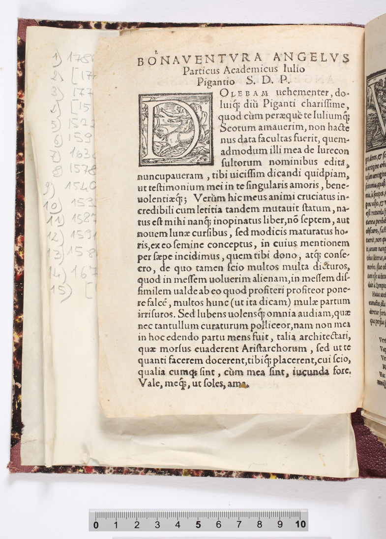 p. 2: Bonauentura Angelus particus academicus Iulio Pigantio S. D. P.