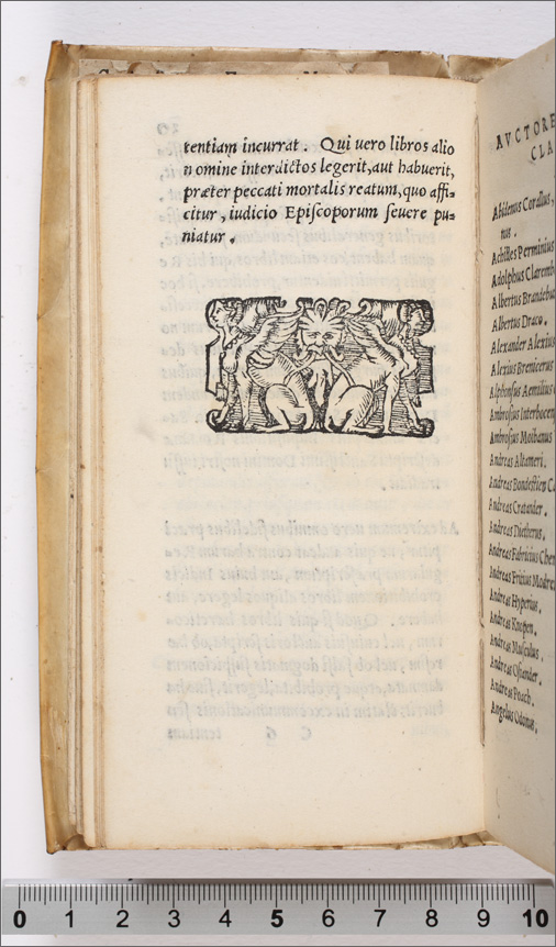 Index librorum prohinitorum, cum regulis confectis per patres à Tridentina synodo delectos, auctoritate sanctiss. D. N. Pii IIII, pont. max comprobatus (c. 19r--59r) |