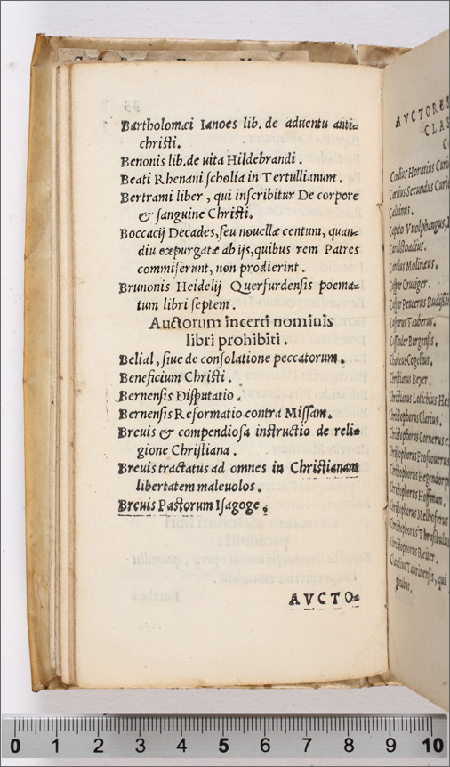 Index librorum prohinitorum, cum regulis confectis per patres à Tridentina synodo delectos, auctoritate sanctiss. D. N. Pii IIII, pont. max comprobatus (c. 19r--59r) |