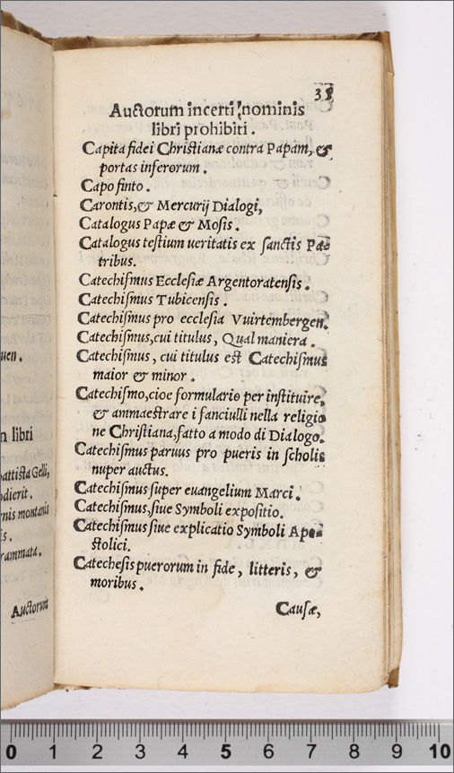 Index librorum prohinitorum, cum regulis confectis per patres à Tridentina synodo delectos, auctoritate sanctiss. D. N. Pii IIII, pont. max comprobatus (c. 19r--59r) |