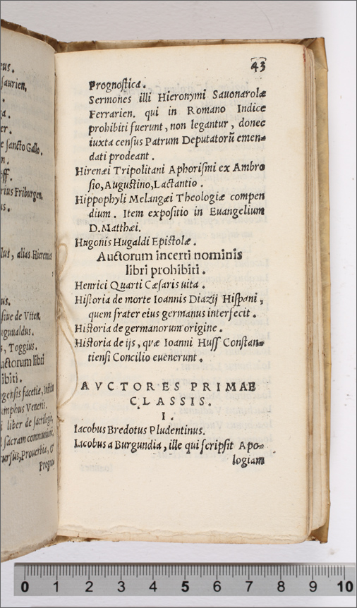 Index librorum prohinitorum, cum regulis confectis per patres à Tridentina synodo delectos, auctoritate sanctiss. D. N. Pii IIII, pont. max comprobatus (c. 19r--59r) |