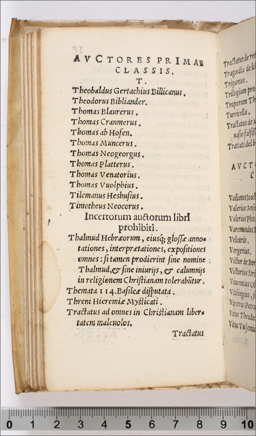 Index librorum prohinitorum, cum regulis confectis per patres à Tridentina synodo delectos, auctoritate sanctiss. D. N. Pii IIII, pont. max comprobatus (c. 19r--59r) |