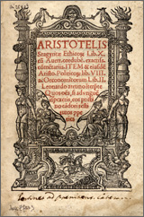 Altre volte, in cornici architettoniche, le sfingi figurano alla base delle colonne: si veda a destra il frontespizio di un'edizione di Aristotele stampata a Pavia nel 1521 da Giacomo Pocatela.